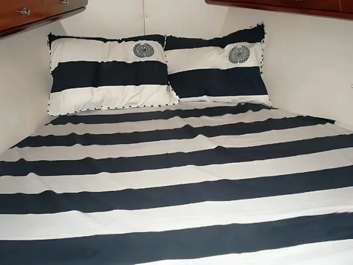 Cockpit cushions, Air condition, Generator, Inverter, Solar Panels, Bimini, Dinghy, Refrigerator, Electric toilet, Cockpit speakers
