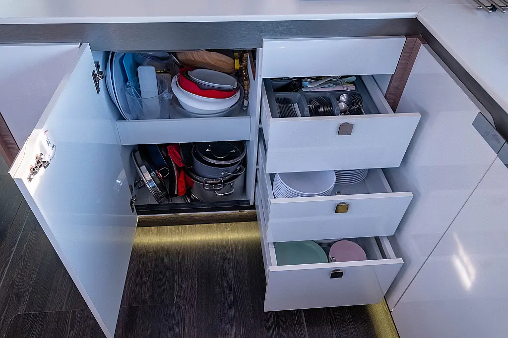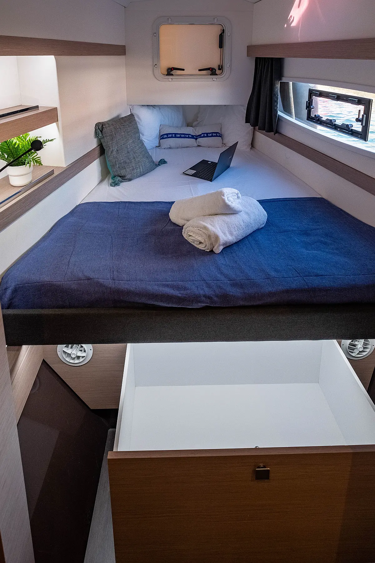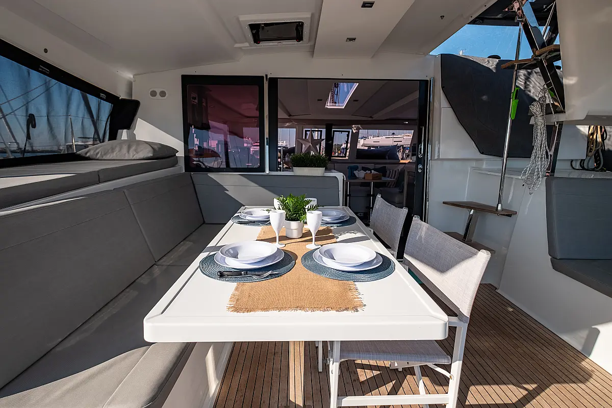 Refrigerator, Cockpit speakers, Electric winches, Dinghy, Air condition, Generator, Inverter, Electric toilet, Solar Panels, Water maker, Outboard engine, Cockpit cushions, Teak Cockpit